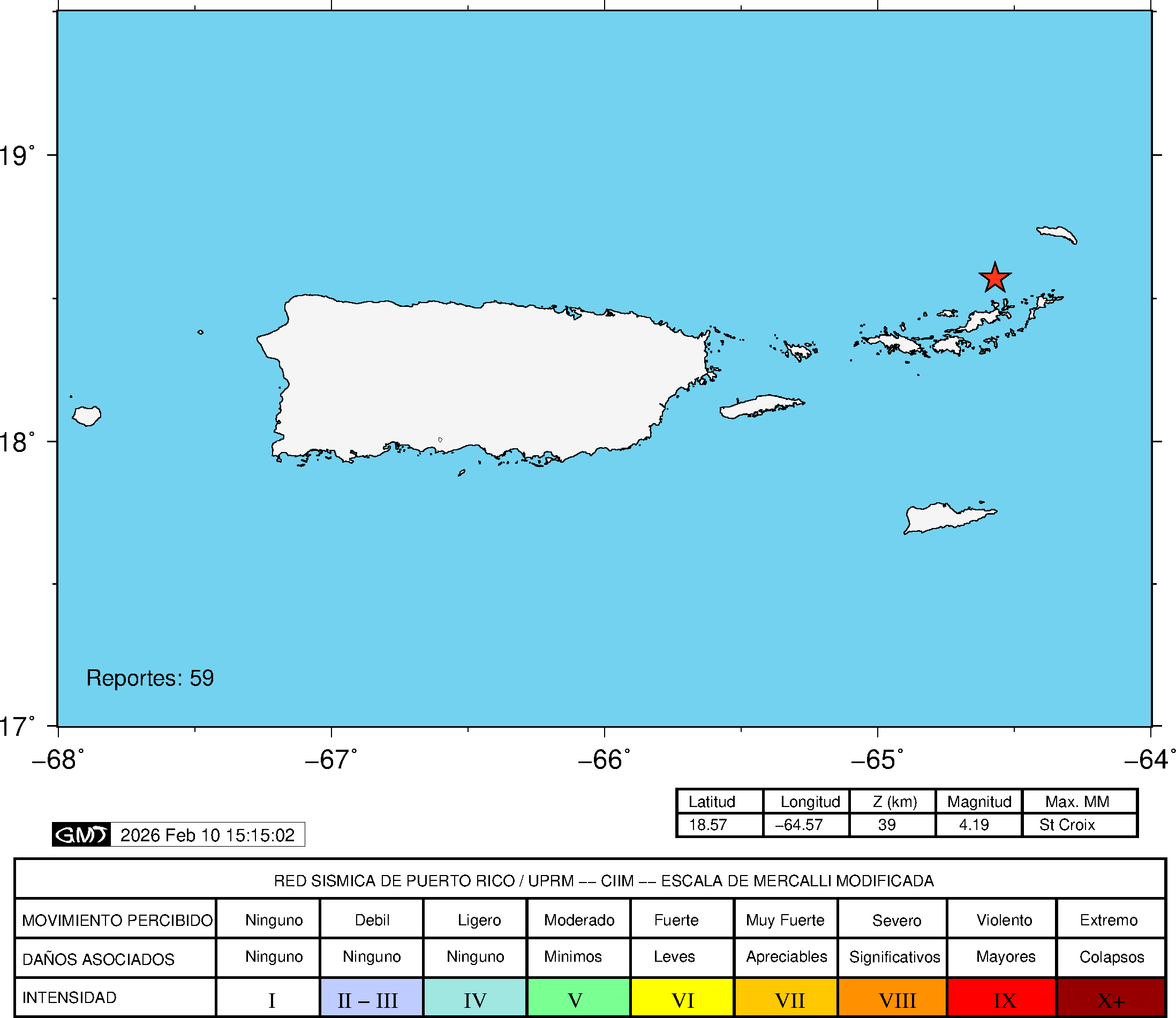 At the moment of generating this bulletin no damages has been reported and are not expected to occur Based on magnitude, location and historic records the earthquake was not sufficient to generate a destructive tsunami to Puerto Rico and Virgin Islands. |