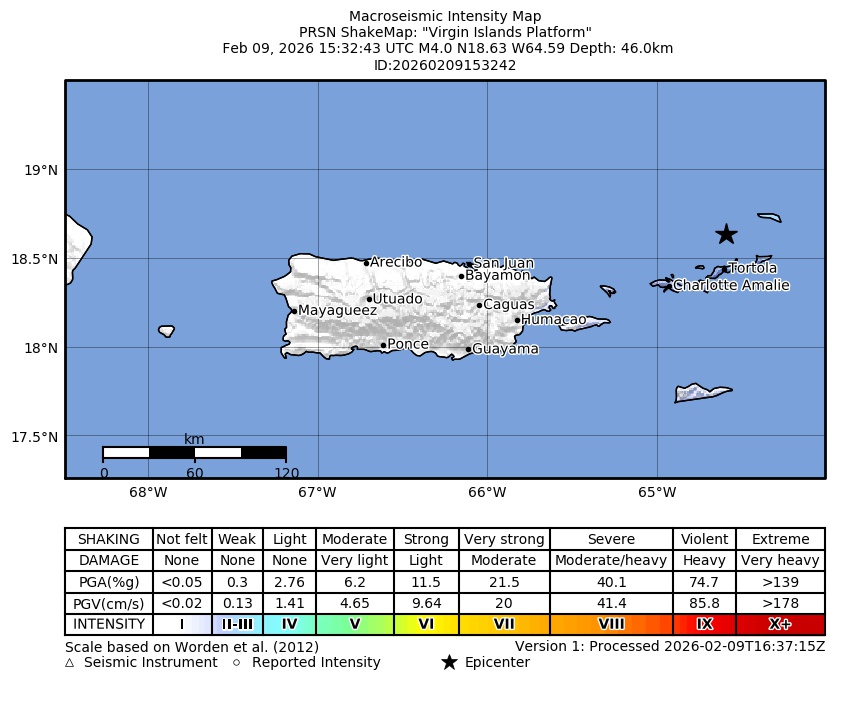 | ESTIMATED MAXIMUM INTENSITY: | IV in Tortola, BVI |