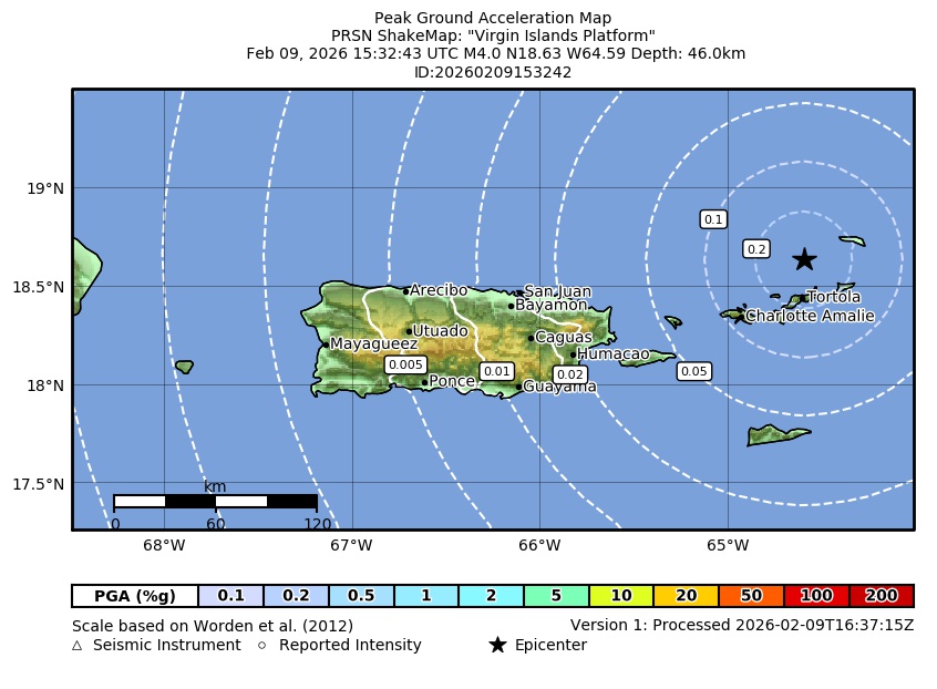 This information is Issued for Puerto Rico and the Virgin Islands.For more information visit your corresponding Seismological Institution or theTsunami Warning Centers