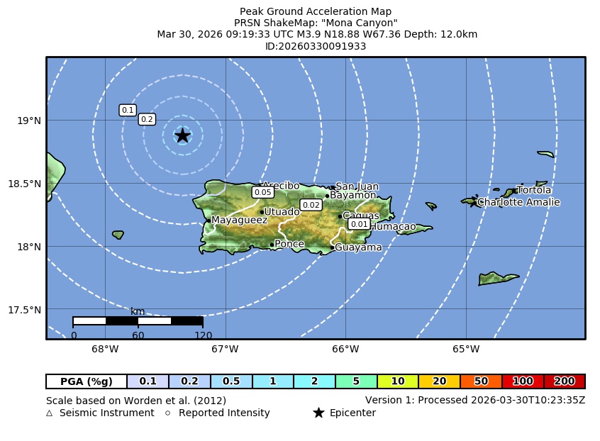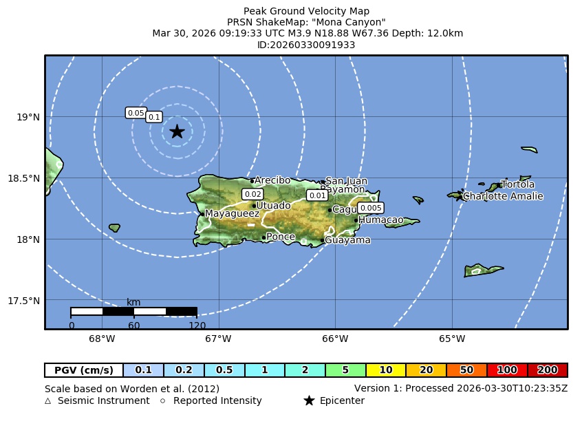 This information is Issued for Puerto Rico and the Virgin Islands.For more information visit your corresponding Seismological Institution or theTsunami Warning Centers