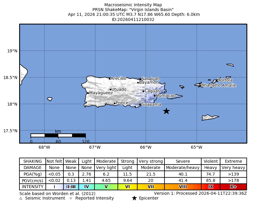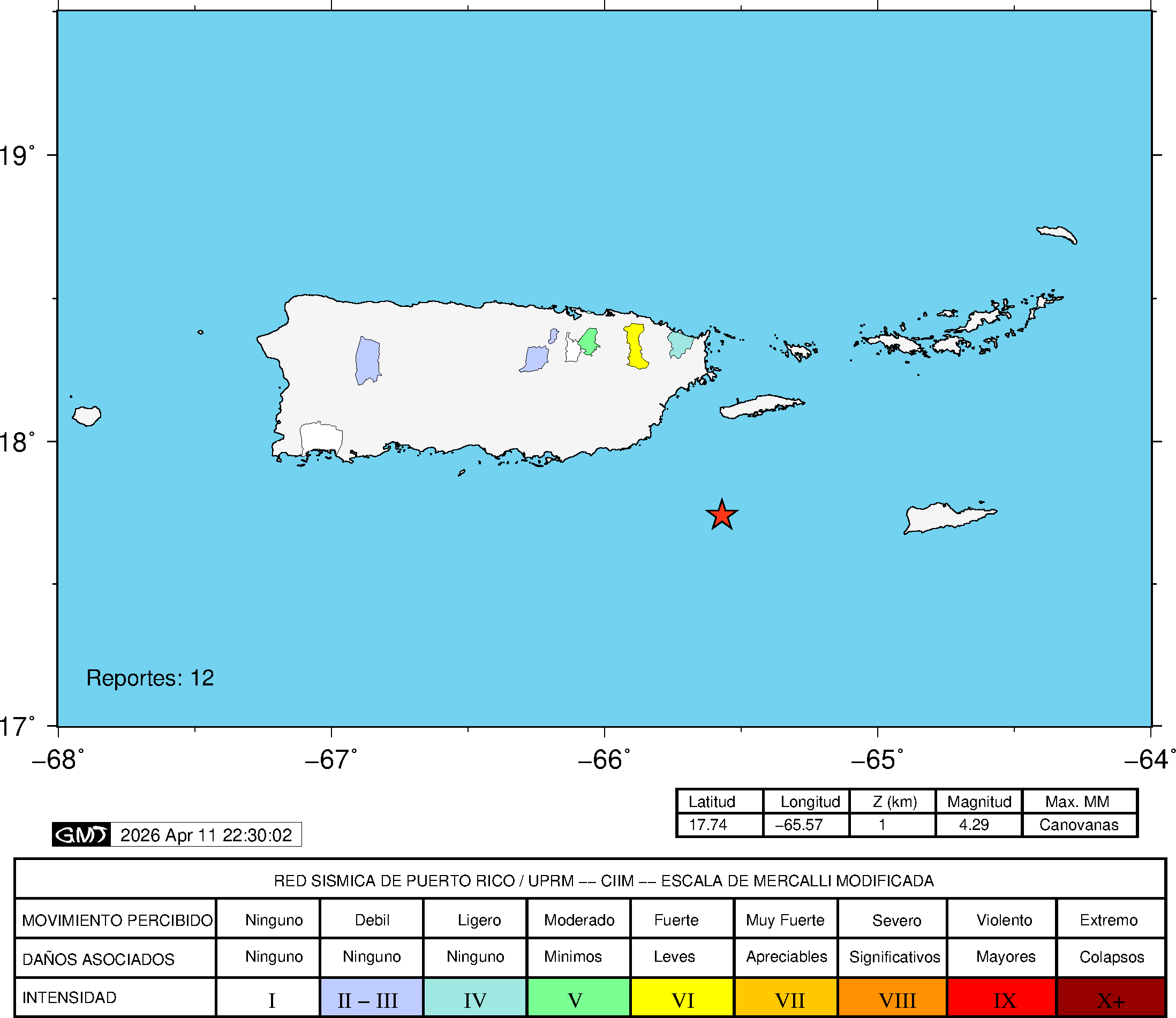 | Estimated Maximum Intensity: | III in Luquillo, PR |