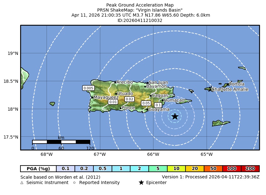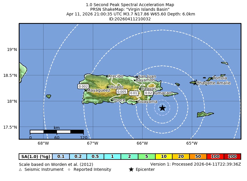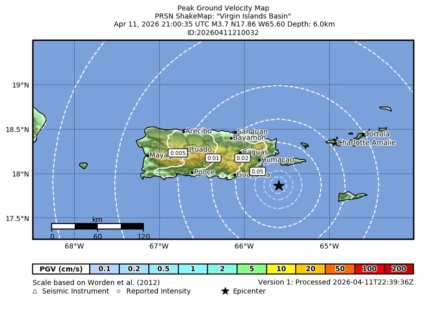 This information is Issued for Puerto Rico and the Virgin Islands.For more information visit your corresponding Seismological Institution or theTsunami Warning Centers