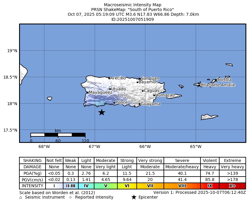 La Red Sísmica de Puerto Rico (RSPR) recibió informes de que este temblor