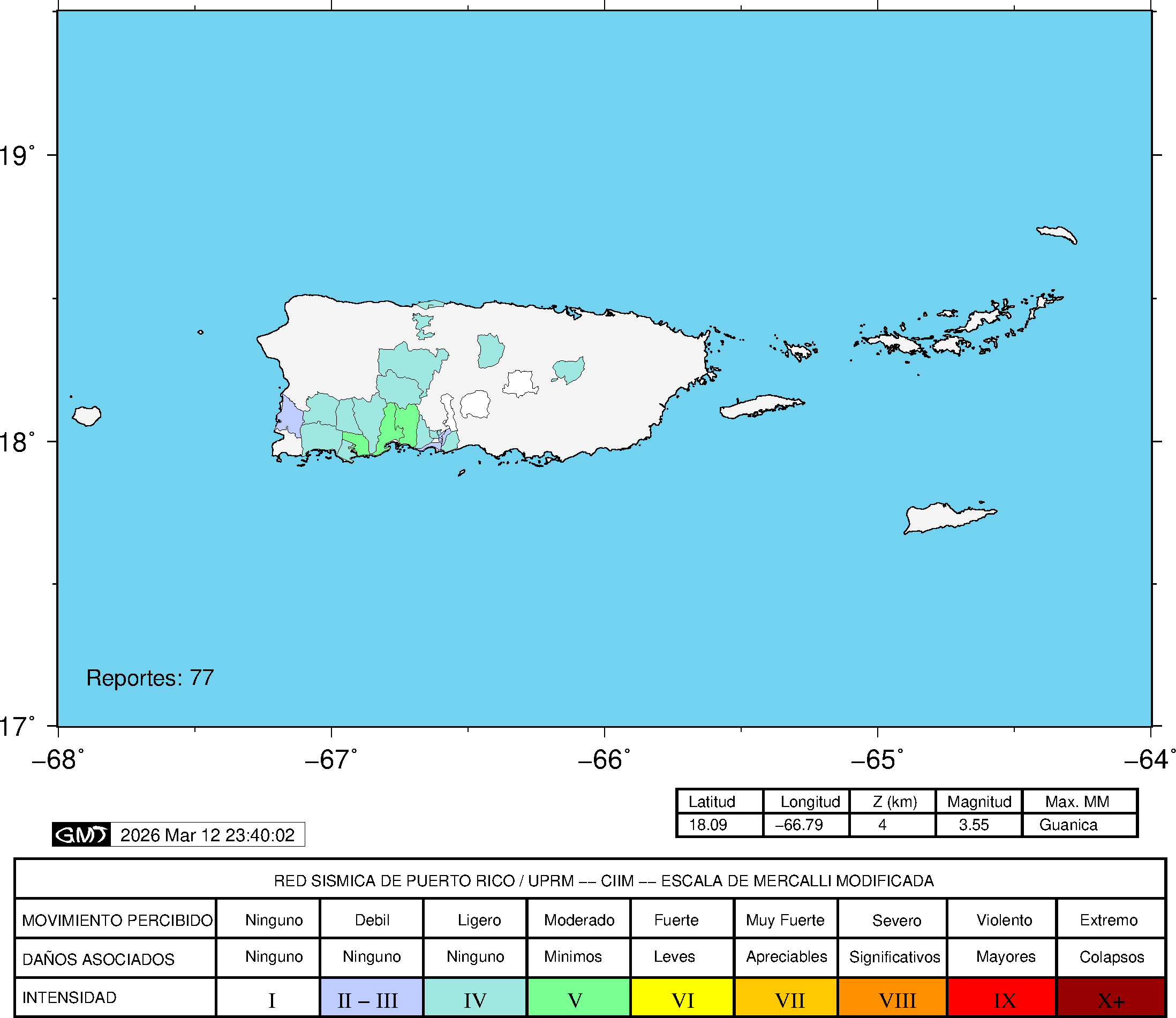 Esta información se emite para Puerto Rico e Islas Vírgenes. Para información adicional visite la página de su Institución Sismológica Correspondiente o los Centros de Alerta de Tsunamis