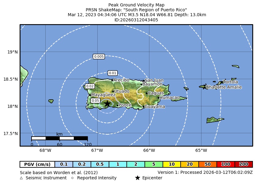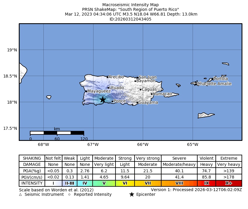 | Intensidad Maxima Estimada: | IV en Ponce, PR |