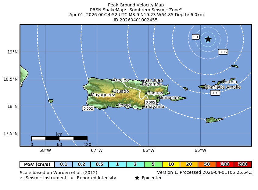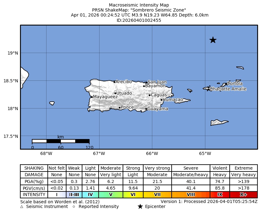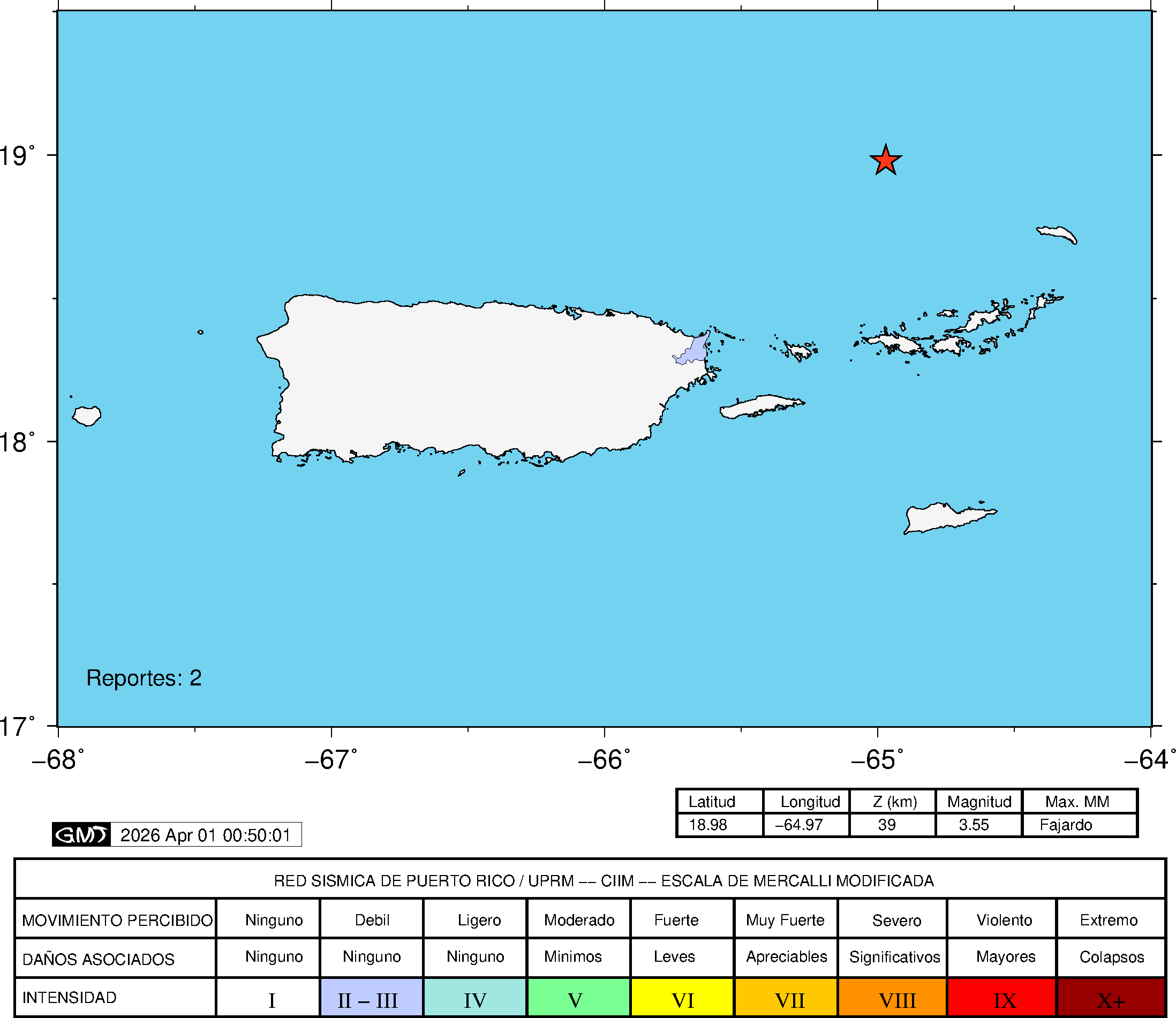La Red Sísmica de Puerto Rico (RSPR) recibió informes de que este temblor
