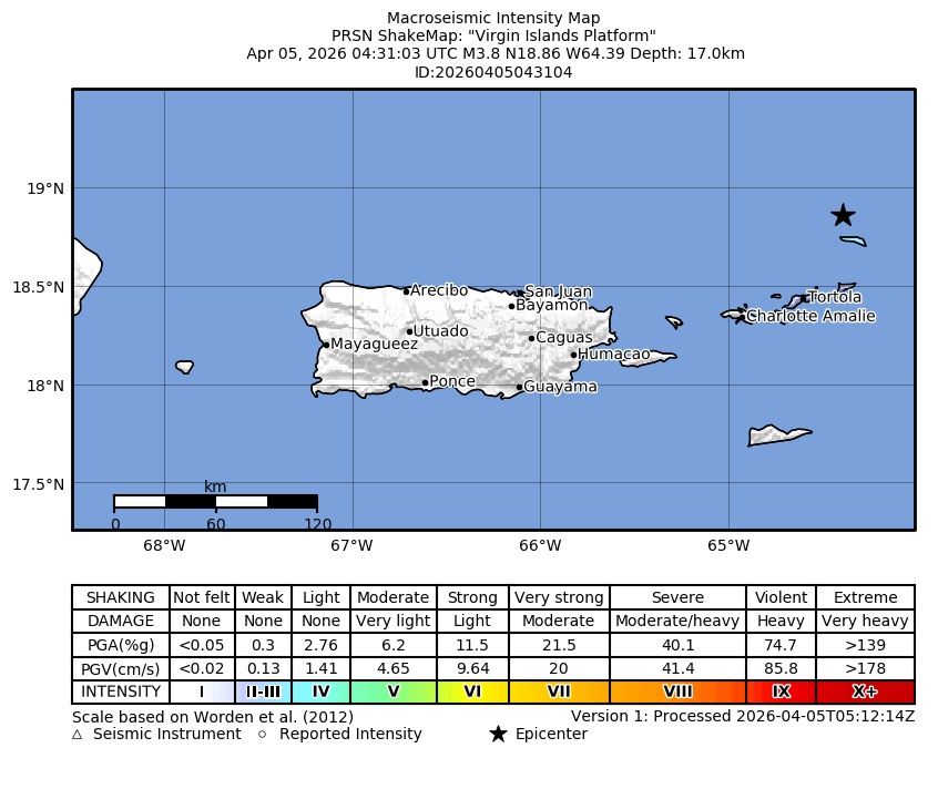 La Red Sísmica de Puerto Rico (RSPR) recibió informes de que este temblor